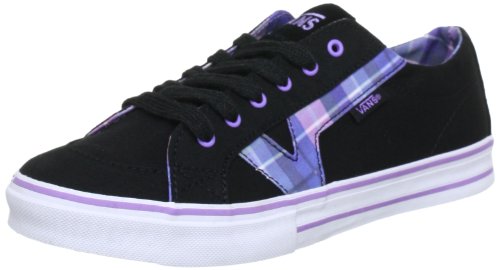 The W Tory sneaker by Vans in a black and purple colorway sends a clear statement to everybody out there: don't mess with your style! So why don't you do your style a favor and get the W Tory? There's no reason why you shouldn't. Vans Vans is a famous streetwear label from California. It finds ist origins in board sport. For more than 40 years it produces high quality shoes and fashion collections. Vans, Inc. is a premier manufacturer of shoes and apparel for a target group of young and active consumers. Vans snowboarding boots and skateboarding sneakers are specifically designed for today's extreme sports culture, and are the footwear of choice among elite athletes worldwide. Through event sponsorships and a chain of skateboarding parks, Vans has forged a unique niche in the booming youth sportswear market. One of its classics is Vans Authentic as well as a wide range of products from a plain Logo T-Shirt till a fashionable jumpsuit both for boys and girls. The company's unflagging commitment to tracking the latest trends has put it in an excellent position to grab an even larger market share as it heads into the 21st century.